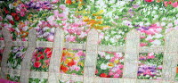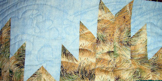 I would like to describe for you on how the quilt took shape, beginning with the center and working my way outwards to its border. A huge debt of gratitude go to Mary G., Kim L., Kris B., and Linda B. without them, their skills, expertise and immagination it would never have turned out so well.