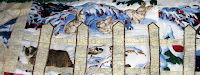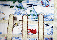 and the cardinals in this snowy winter themed fabric. The last part of the fenced in portion shows of the wonderful red cardinals and other birds of winter.